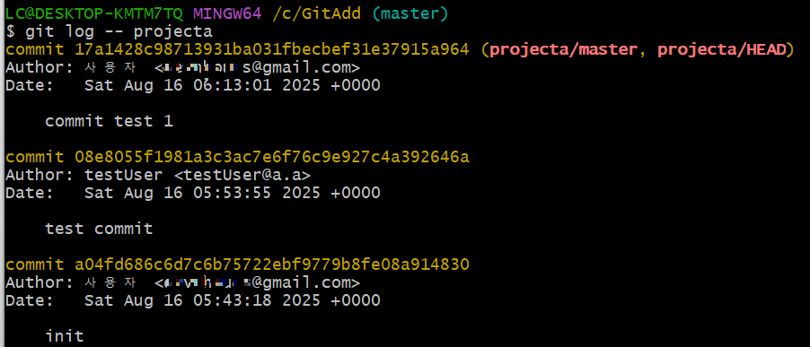 * 작업 설명 및 테스트 환경- 1개의 저장소에 필요한 프로젝트만 히스토리를 포함하여 이관하면서 프로젝트별로 히스토리를 분리하여 볼 수 있는 방법이다. 만약 히스토리를 무시하거나 저장소를 각각 사용하는 경우나 SVN을 한번에 옮기는 경우는 다른 쉬운 방법들이 활용하자.- tags, branch 등을 사용하지 않는 기본 구조이다. - SVN -> GitLab으로 이관이다.- 버전: Visual Svn(5.4.4.0) // Git(2.50.1) // Window 11- AI는 Subtree 방식을 고집했으나 테스트 결과 프로젝트별로 History를 구분해서 볼 수가 없어 아래 방법으로 처리 테스트 및 백업 필수!! 0. 현재 구성 1. 사용자 추출 및 매핑 정보 생성commit 기록이 없는 사용자는 추출..